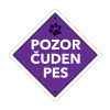 Barvna tablica za pse, napis Pozor čuden pes