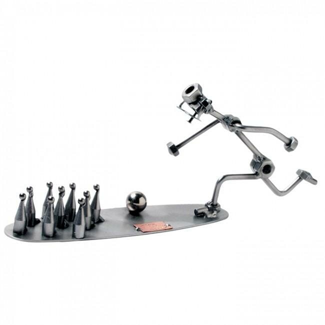 Ste ljubitelj zabavne igre bowling, ki jo pogosto igrate s prijatelji ali pa morda imate tistega prijatelja, ki je res dober v njej? Podarite mu brezčasno darilo za dekoracijo doma ali pisarne z gratis graviranim sporočilom po želji. Izdelana je iz kovinskih delcev kot so matice, podložke ipd. s strani priznanega nemškega proizvajalca. Velikost skulptura je 32 x 11 x 7 cm (Š x V x G). Če skulptura ni ravno po vašem okusu si oglejte še ostala darila za športnike in kovinske skulpture.