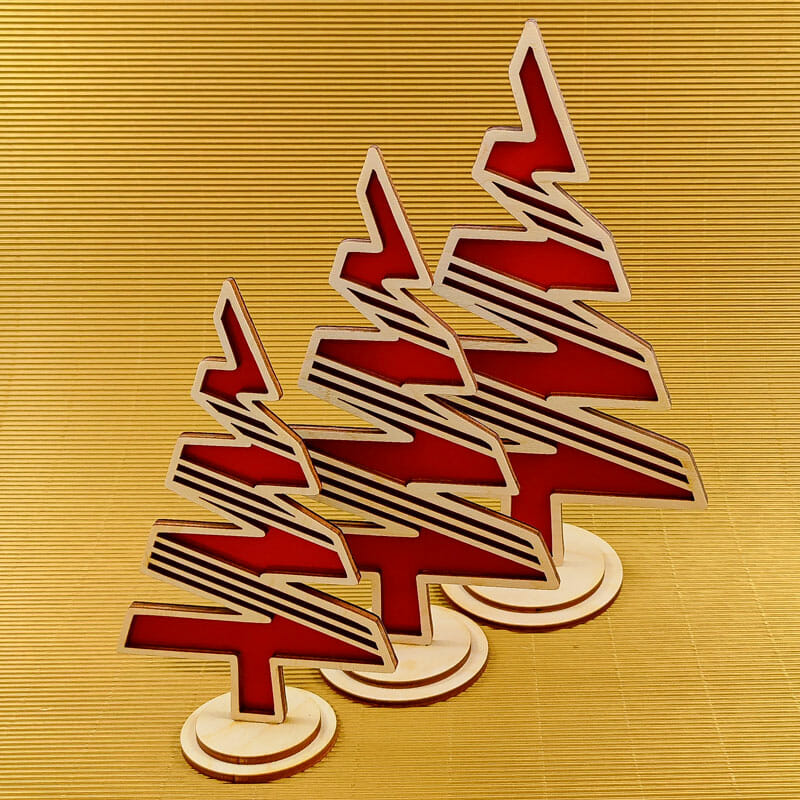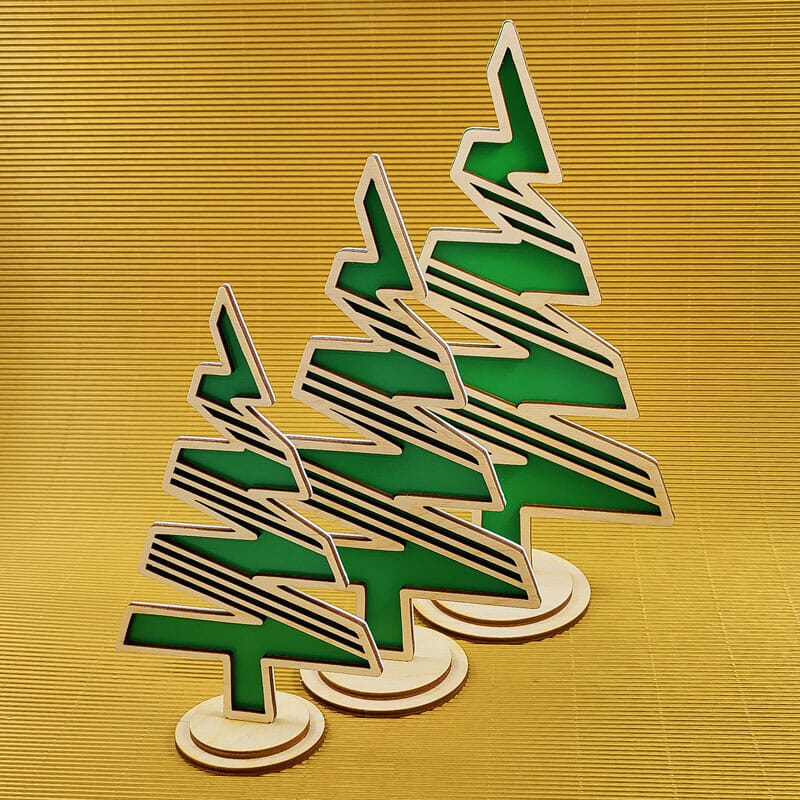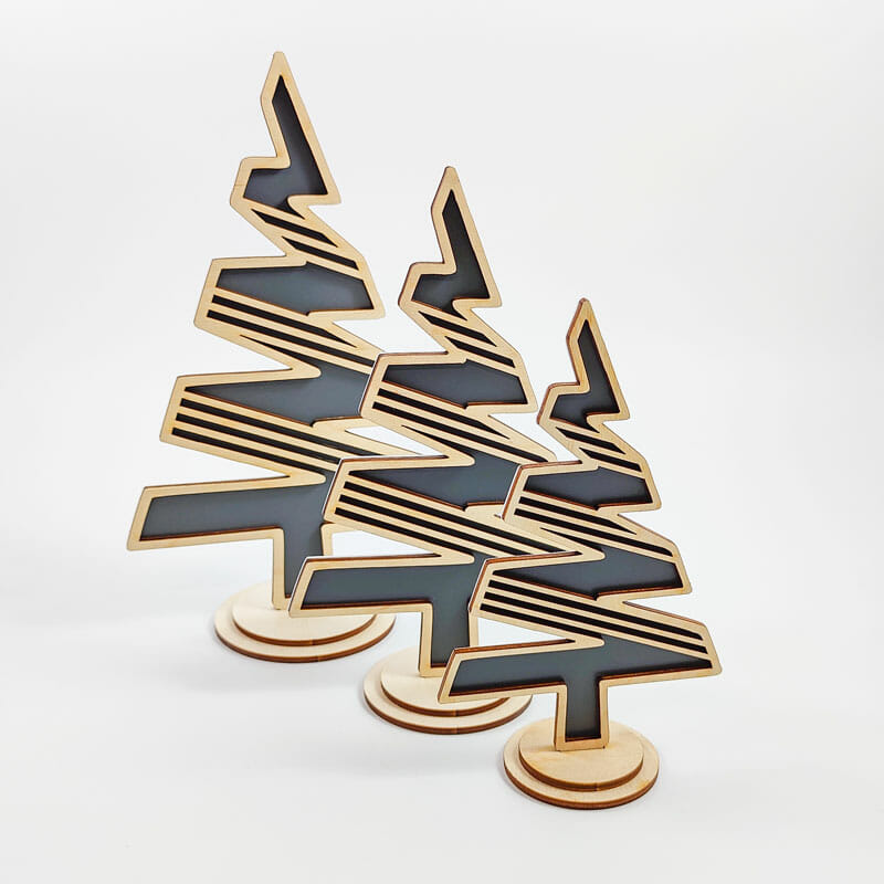 Dekorativna lesena smrečica, set 3 kos