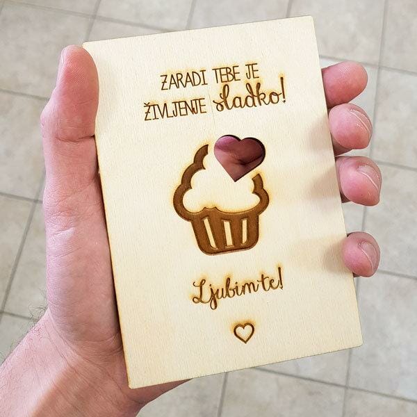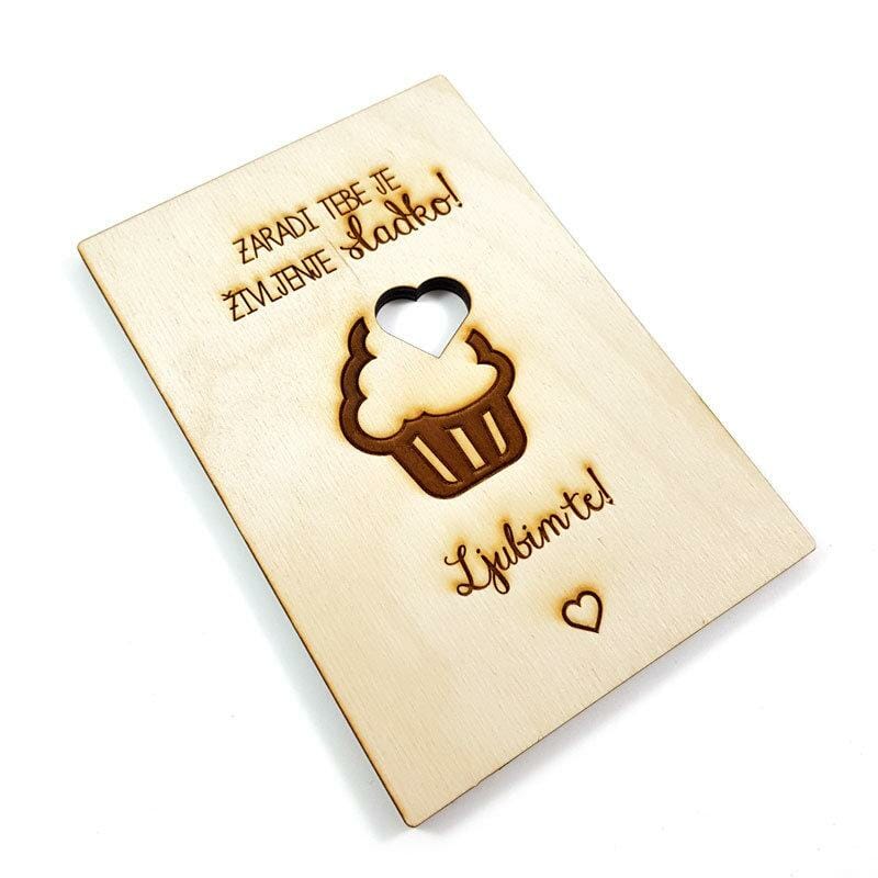Dekorativna tablica iz lesa “Ljubim te!” je izredno lepo darilo. V motivu je lasersko izrezan srček, mnenja ali predstavlja majhno tortico ali pa kar muffin, pa presodite sami. Tablica je primerno za ljubitelje sladic in kuharske peke, predvsem pa sladkih dobrot. Mnogi namreč močno povezujejo termina ljubezen in hrana, potrjuje pa ga rek: Ljubezen gre skozi želodec! Dekorativna tablica se lahko položi na polico v vaši spalnici ali dnevni sobi, priložimo pa tudi obojestransko lepilo, s katerim vašo dekorativno tablico pritrdite na vse ravne površine kot so stene na stopnišču ali pa kar na hladilnik v vaši kuhinji.