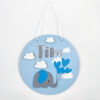 Četrti izdelek je tablica za vrata. S to personalizirano modra tablico bo otroška soba videti še bolj čarobno. Z imenom otroka na tablici, bo vsak obiskovalec vedel, da je to prostor posebnega fantka.