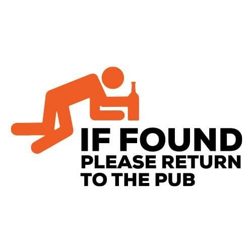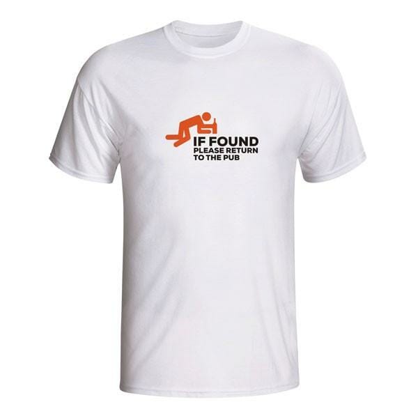 Majica z motivom If found please return to the pub, na voljo v moški in ženski izvedbi.