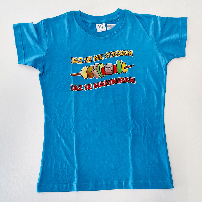 Prodamo žensko majico z motivom Jaz se ne staram, Jaz se mariniran. Majica je nova, saj jo stranka ni prevzela.