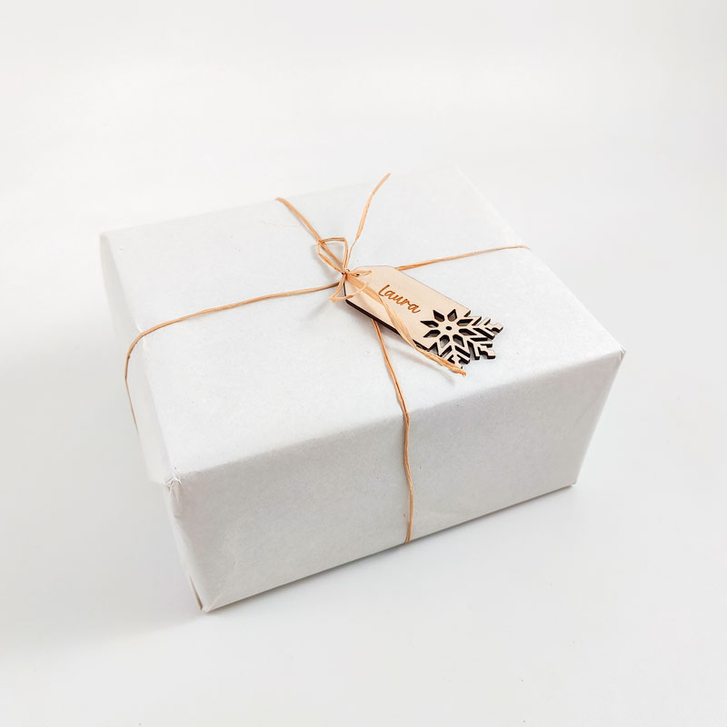 Odkrijte čar prazničnega obdarovanja z osebnim pridihom z našim lesenim obeskom v videzu snežinke za darila. Ta eleganten in subtilen dodatek prinaša toplino naravnega lesa in nežnost zimske idile v vsak dom, torbico ali avto, kjer se bo prepletal s spomini in nasmehi. Vsak obesek je skrbno oblikovan, izrezljan in osebno graviran z imenom po vaši izbiri. Motiv snežinke ne predstavlja le zime, ampak tudi unikatnost – saj ni dveh enakih snežink, prav tako ni dveh enakih obeskov.