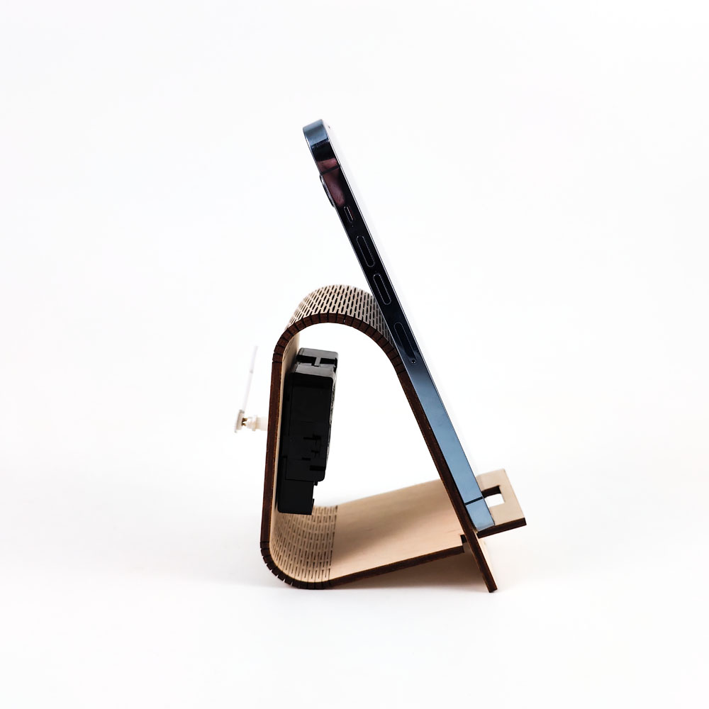 Pridobite eleganten in funkcionalen dodatek za vaš dom ali pisarno z našim ročno izdelanim lesenim stojalom za telefon, ki vključuje lasersko izrezano konstrukcijo in gravirano številčnico. Izdelek je narejen iz visoko kakovostne 4 mm vezane plošče, kar mu daje naraven in sodoben videz. Številčnica je natančno gravirana po vaši meri, kar omogoča popolno personalizacijo z napisi po vaši izbiri.