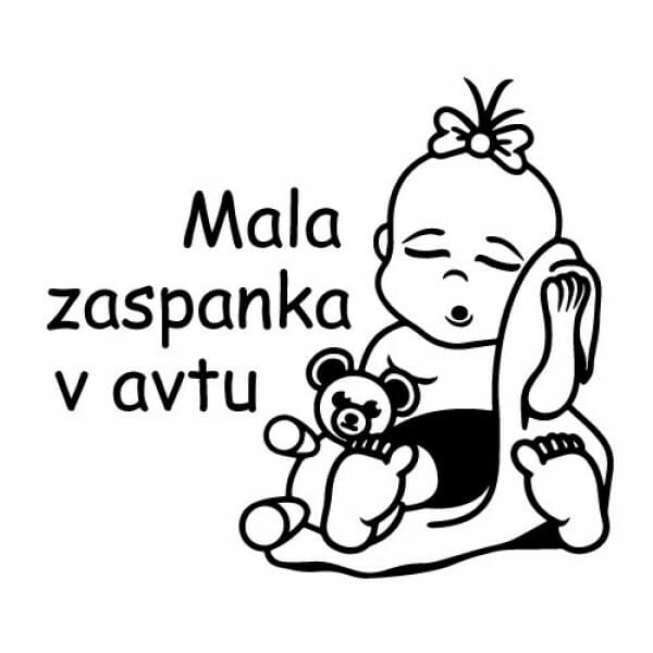 Mala zaspanka v avtu nalepka za otroke z napisom