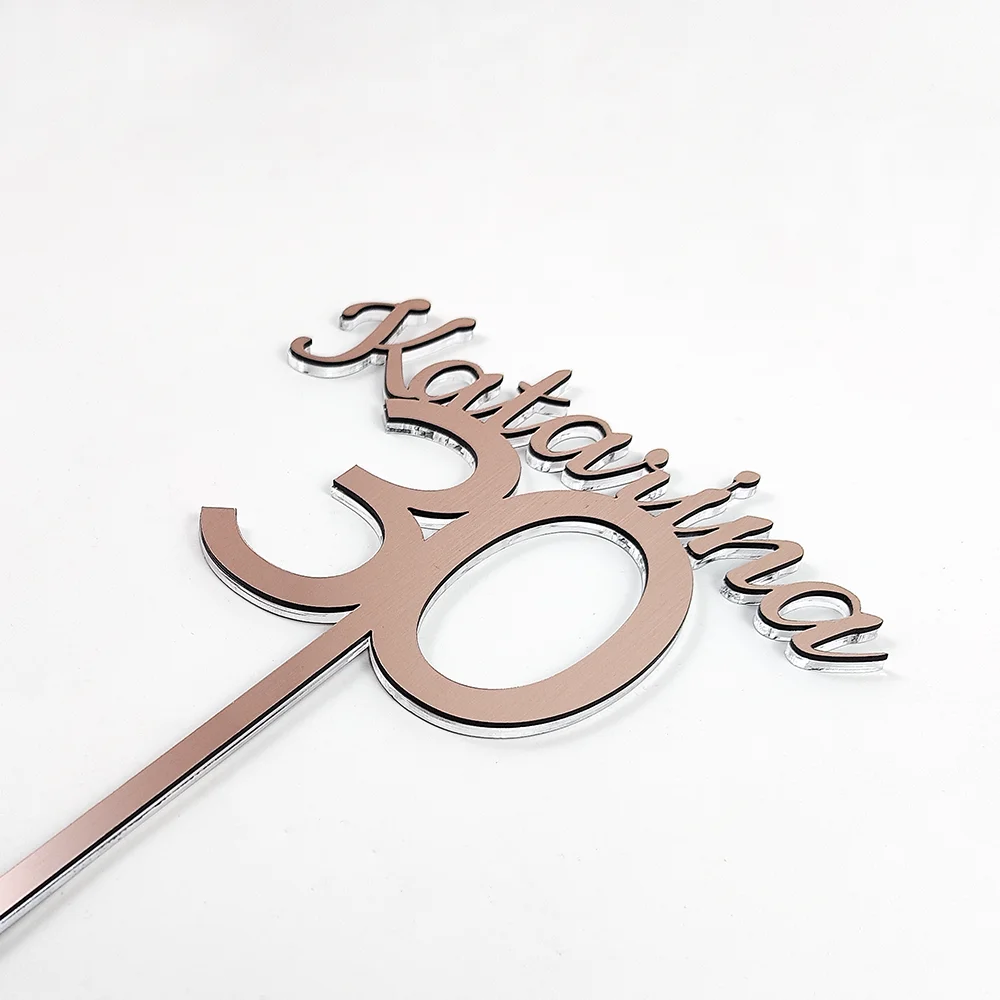 Dodajte torti eleganten in oseben pridih s čudovitim personaliziranim cake topperjem z imenom in številko. Izdelan je iz kakovostnega pleksi stekla (akril) in gravirne plastike, ki poskrbita za čvrstost in razkošen sijaj.