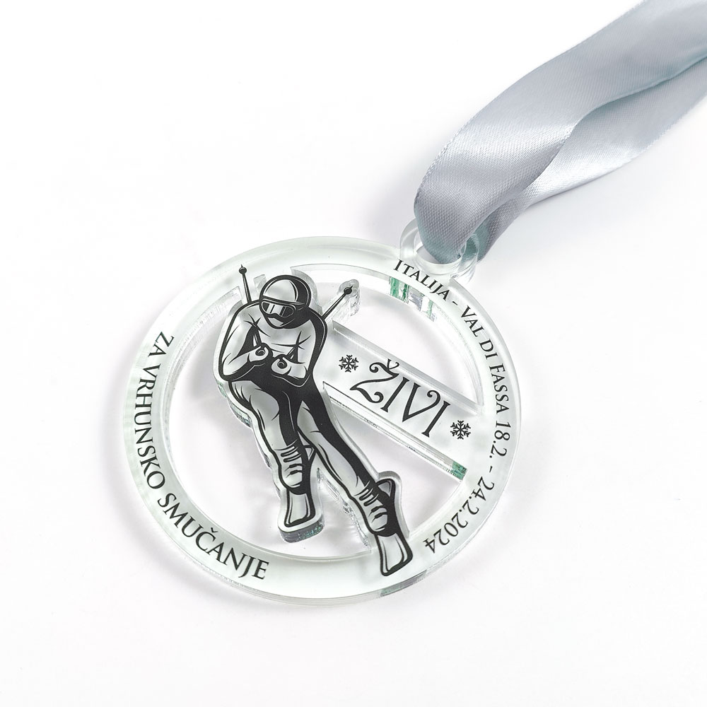 Odkrijte popolno darilo za vsakega smučarskega navdušenca ali priznanje za dosežke na belih strminah – osebno prilagojeno medaljo za smučanje. Ta elegantna medalja je več kot le nagrada; je spomin na izjemne trenutke, preživete na snegu, in osebni uspehi, ki so jih dosegli smučarji. Vsaka medalja je skrbno izdelana iz kakovostnega akrilnega stekla, z možnostjo tiska imena, datuma ali posebnega sporočila, ki bo za vedno ohranilo spomin na vaše smučarske avanture. Ne glede na to, ali gre za tekmovanje, osebni rekord ali prvi spust po belih strminah, bo ta personalizirana medalja zagotovo prinesla nasmeh na obraz vsakega prejemnika. Idealna je za športna tekmovanja, spominska darila ali kot del vaše zbirke smučarskih trofej. Ustvarite trajen spomin na smučarske dosežke z medaljo, ki je več kot le nagrada, je trajni spomin na strast do smučanja.