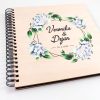 Če iščeta popoln način za shranjevanje spominov na vajin nepozabni poročni dan, je naš personaliziran poročni album prava izbira za vaju! Ta eleganten album združuje estetsko privlačnost in funkcionalnost, saj je izdelan iz trpežnih lesenih platnic, ki jih lahko prilagodimo z vajinimi imeni in datumom poroke. Na naslovnici se nahaja prelepa ilustracija cvetličnega venca, ki dodatno poudari romantično vzdušje.