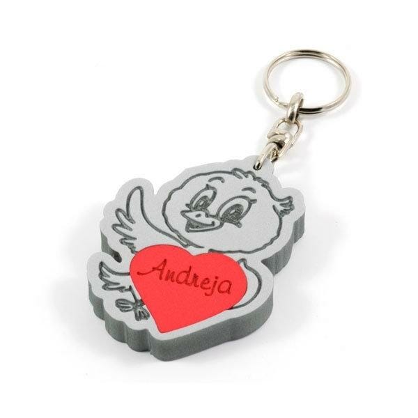 Ptiček je obesek za ključe, namenjen kot darilo s posvetilom. V obesku ptiček je rdeč srček, na katerega graviramo ime ali kratko posvetilo po vaših željah. Že veste, komu bi lahko podarili to personalizirano darilo? Obeski za ključe so lepo darilo za rojstne dneve, obletnice ali kot darila za otroke. Za največje presenečenje ob odpiranju darila poskrbi vaš napis, ki bo razveselil slavljenca ali prejemnico darila. Ptički so znani po žvrgolenju pesmi iz zimskega obdobja v pomlad, ko je čas zaljubljencev.