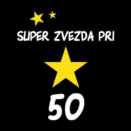 Super zvezda pri 50, majica z napisom