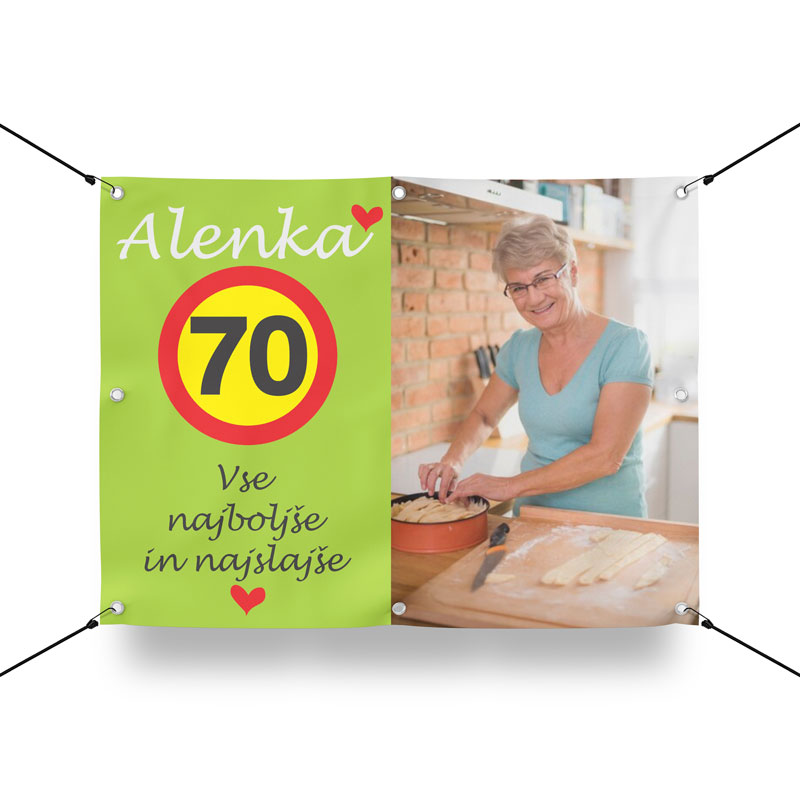 • Dodajte svoje besedilo in fotografijo ali pripnite že oblikovan transparent.