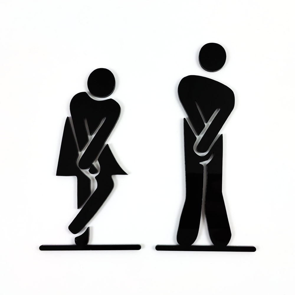 Označite moški in ženski WC na zabaven, a hkrati eleganten način s kompletom lasersko izrezanih silhuet iz črnega pleksija. Ta paket vsebuje silhuete moškega in ženske, ki so idealne za moderne kopalnice v restavracijah, pisarnah, lokalih ali domačih prostorih. Izdelane so iz 5 mm debelega pleksija in imajo že nameščeno lepilno podlago za enostavno montažo na katerokoli gladko površino.