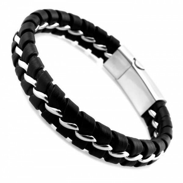 - Zapestnica iz nerjavečega jekla in usnja